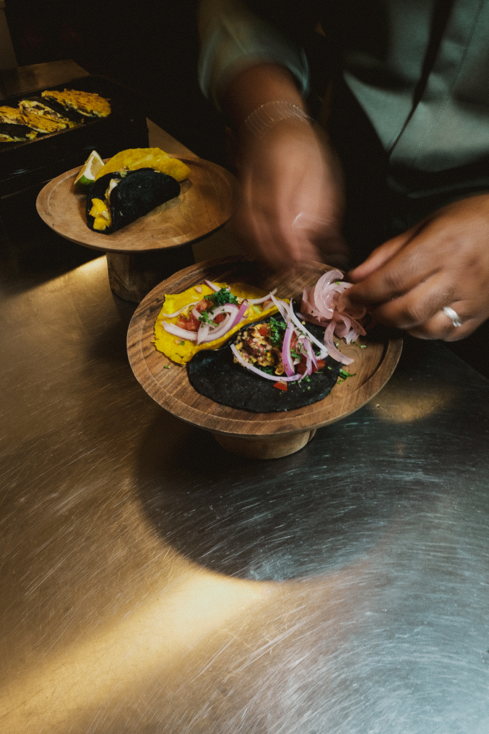 Chez AZULIK INLA, la cuisine se pense à la main. Nos Chefs sont formés aux gestes traditionnels d’Amérique latine : cuisson lente, travail du végétal, sauce maison, tortilla maison. Chaque plat est préparé avec rigueur, intuition et respect du produit. Une cuisine d’émotion, transmise, enracinée où chaque assiette porte l’empreinte de ceux qui la font !